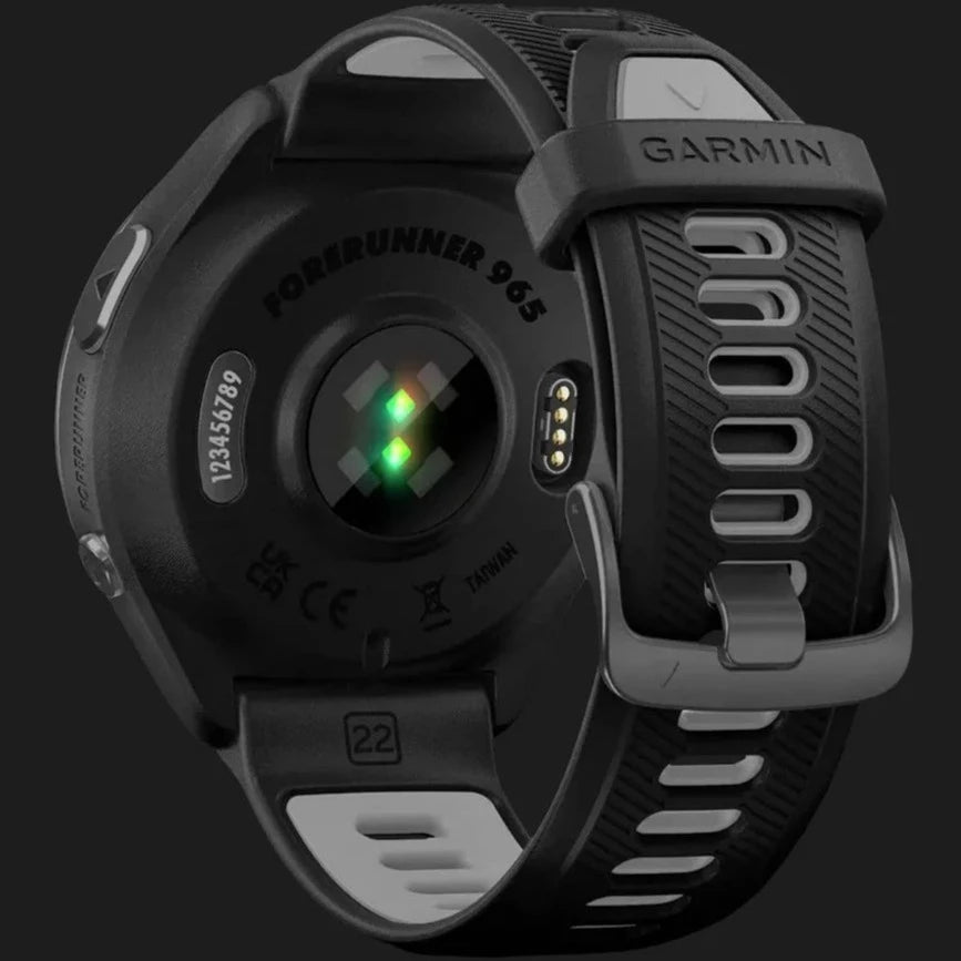 GARMIN Forerunner 965 – Smartwatch - Carbon Gray DLC Titanium Bezel with Black Case and Black/Powder Gray Silicone Band