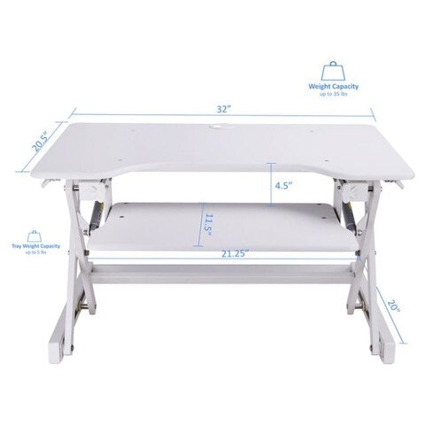 Rocelco 32" Height Adjustable Standing Desk Riser with Easy Up-Down Handles (White)